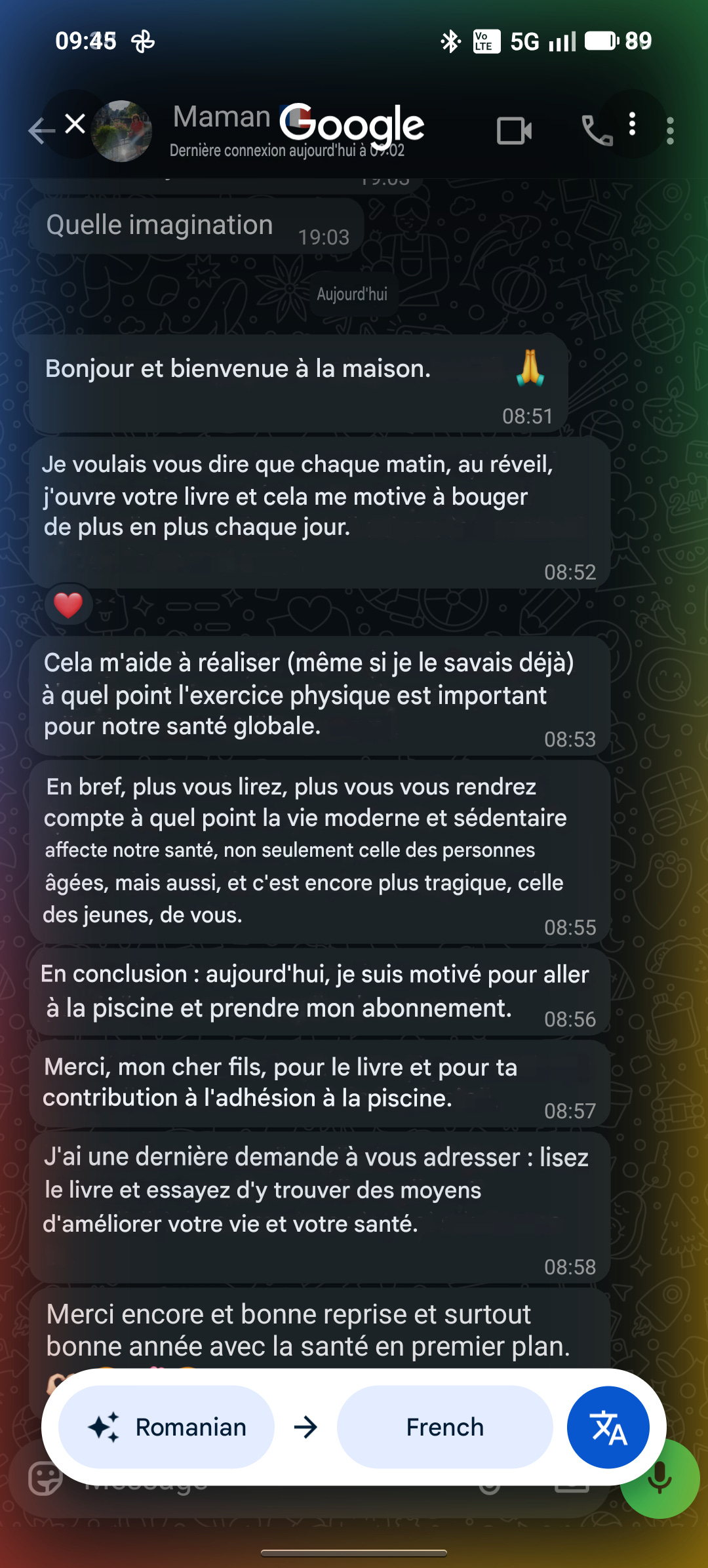 Je voulais vous dire que chaque matin, au réveil, j’ouvre votre livre et cela me motive à bouger de plus en plus chaque jour.