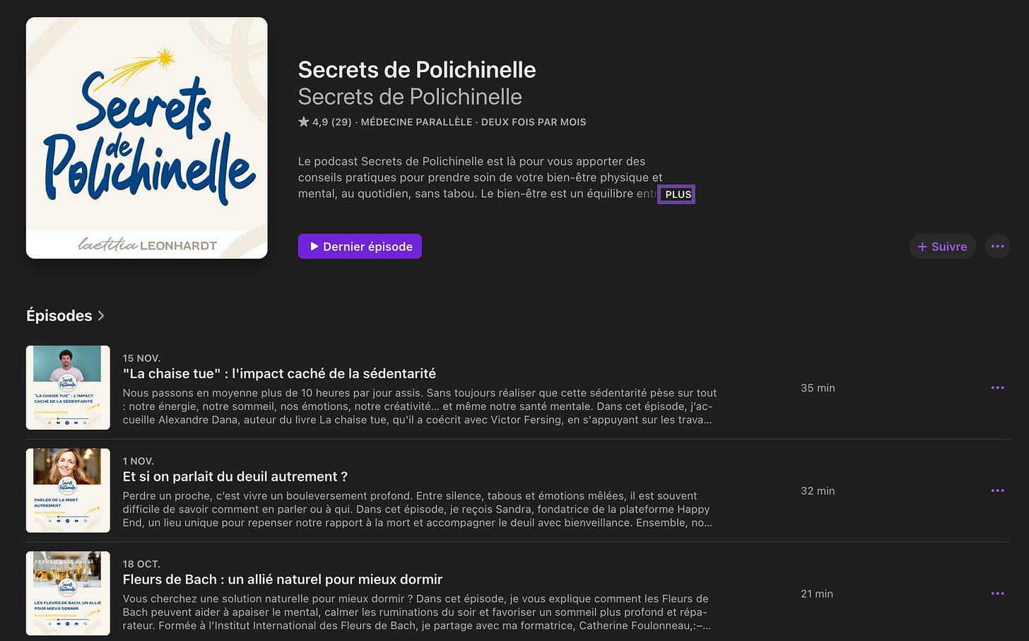 Merci également à Laetitia Leonhardt, coach, thérapeute et créatrice du podcast Secrets de Polichinelle.