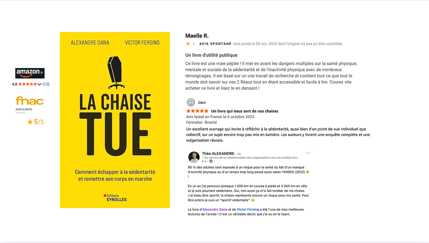 On parle de nous !⭐️ Les avis sur les plateformesLes avis AmazonLes avis Fnac🎥 Les contenus YoutubeInterview sur la chaîne de Fabrice MidalVidéo d’Eliott MeunierLe pouvoir de la marche, 5 conseils de santéVidéo - chaîne La Fabrique SocialeInterview sur la chaîne LevelUp✍️ Dans la presse écrite